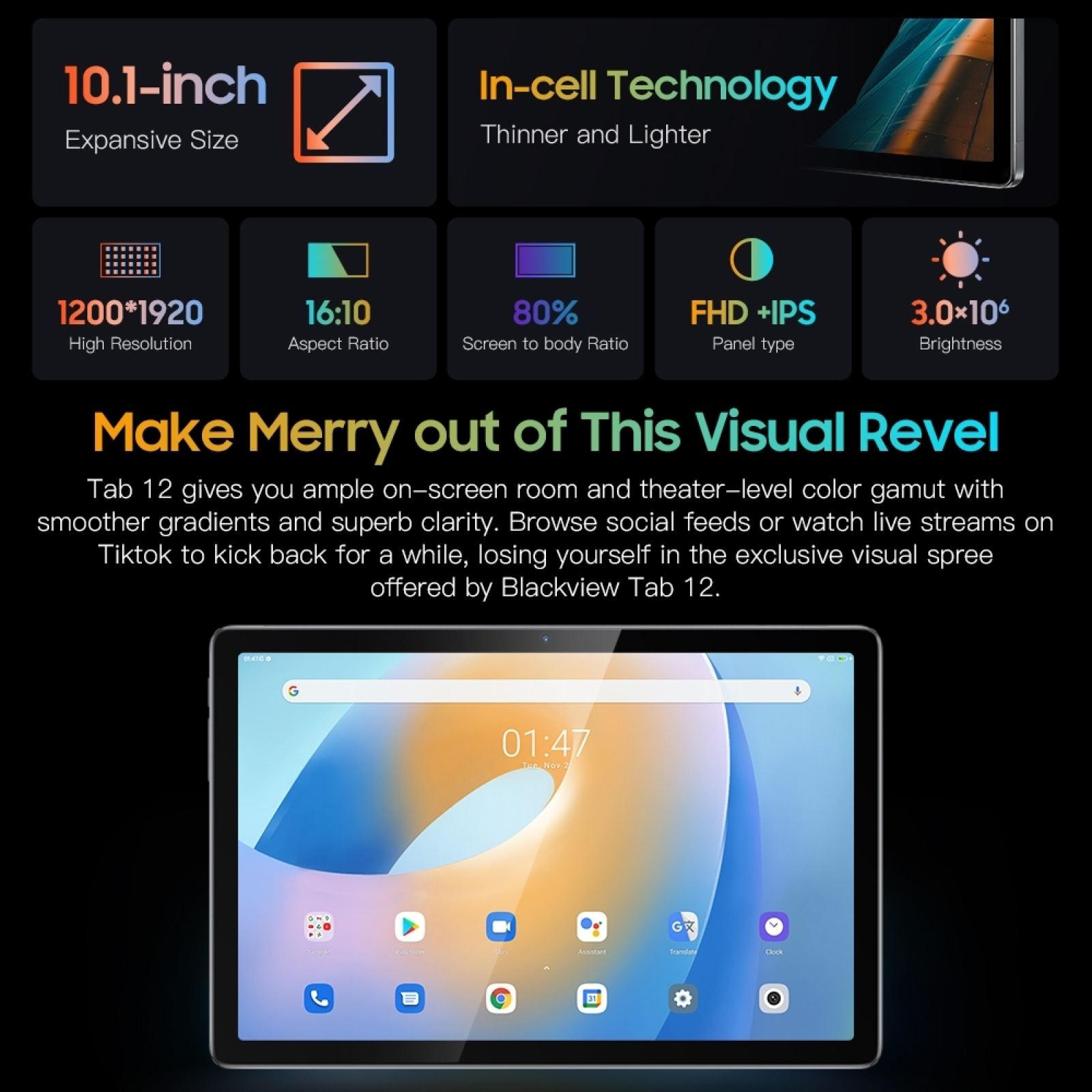 2. 10.1 inches 1200*1920 FHD+ IPS screen, more delicate picture quality, better video experience.